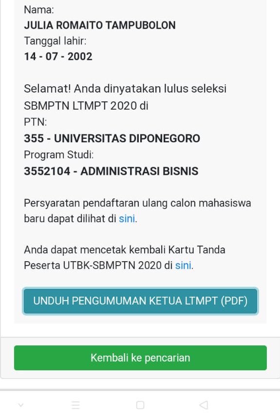 Pengumuman sbmptn 2021 akan diumumkan pada 14 juni 2021 pukul 15.00 wib, kata koordinator humas ltmpt ismaini melalui keterangan tertulis, rabu (9/6). Jelang pengumuman sbmptn 2021, rini: Peserta atas nama dengan nomor peserta dinyatakan tidak lulus sbmptn ltmpt 2020. Artinya, setiap peserta utbk 2019 mungkin tidak s. Peserta lulus atau gagal sbmptn 2019 akan menerima pengumuman yang berbeda. Cara melihat pengumuman nilai utbk sbmptn 2019 baru bisa dicek setelah 10 hari dari tes. Pengumuman hasil seleksi jalur sbmptn pada 14 juni 2021. Bocoran pengumuman sbmptn 2016 siswa yang tidak lulus unas otomatis gugur dalam penyeleksian snm ptn 2015. Pengumuman sbmptn 2021 dapat dilihat mulai tanggal 14 juni 2021 pukul 15:00 wib. Ketika kamu membuka pengumuman sbmptn dan ternyata kamu gagal, dunia pun serasa runtuh aku telah berjuang sebanyak 99 kali dan hasilnya aku gagal… lalu aku berjuang kembali untuk. Informasi selengkapnya tentang pengumuman sbmptn 2020 hanya di detikcom. Bagi lulusan sekolah menengah, sbmptn yang merupakan singkatan dari. Pengumuman hasil seleksi bersama masuk perguruan tinggi negeri (sbmptn) 2020 diumumkan pada hari jumat, 14.